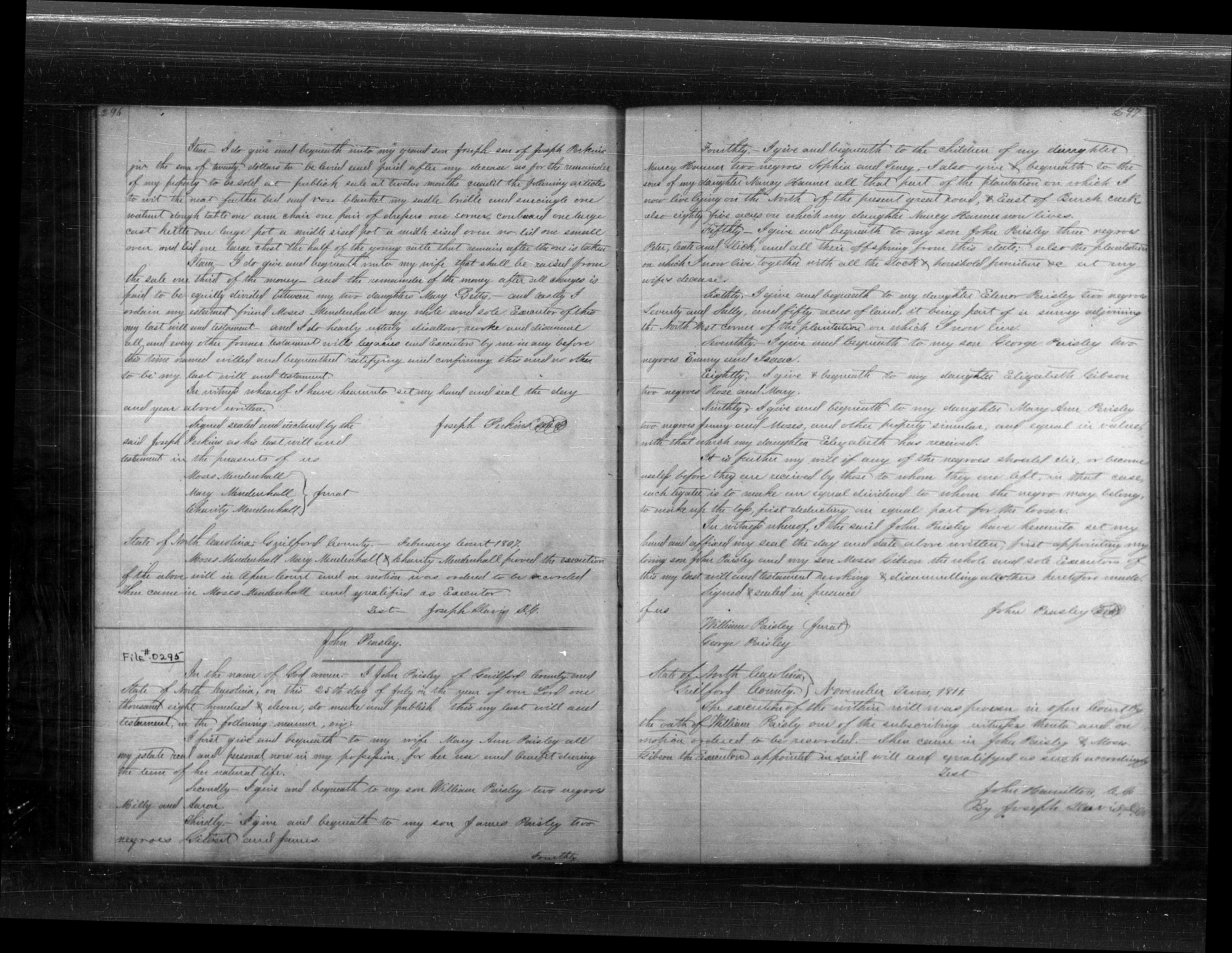 Will / Probate – Paisley, William Jr 1822 Guilford CO NC